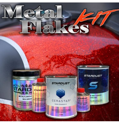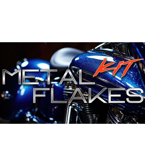 O kit metal flakes Candy cria uma cor profunda e translúcida, com um efeito brilhante tipo flakes.