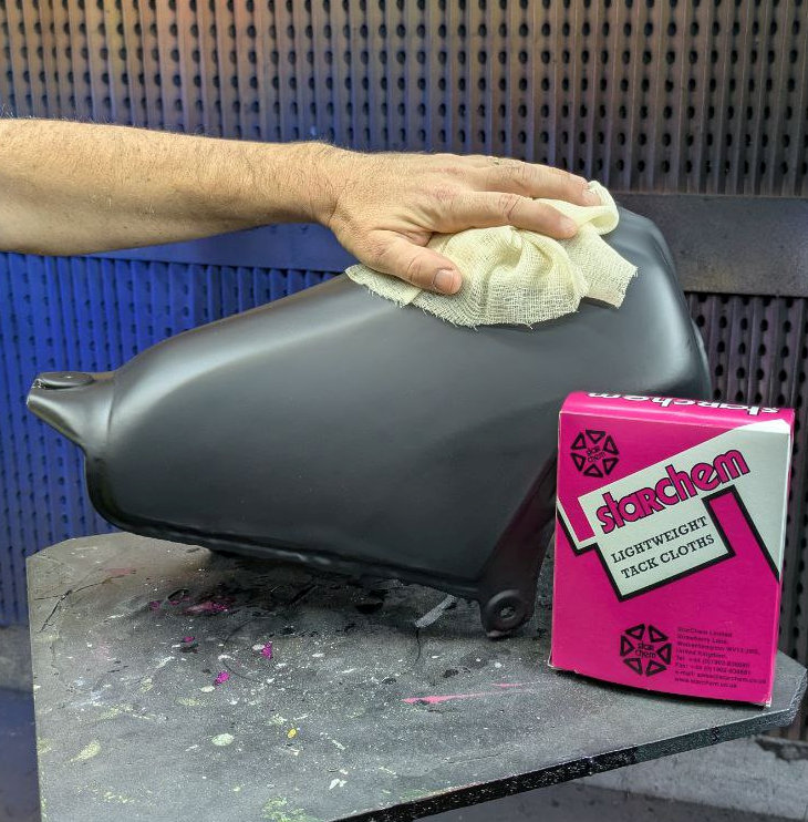 Os tampões adesivos "tack Cloth" não se destinam a remover resíduos de lixagem, que devem ser removidos por enxaguamento e secagem. Destinam-se apenas a recolher o pó leve na última fase antes do verniz.