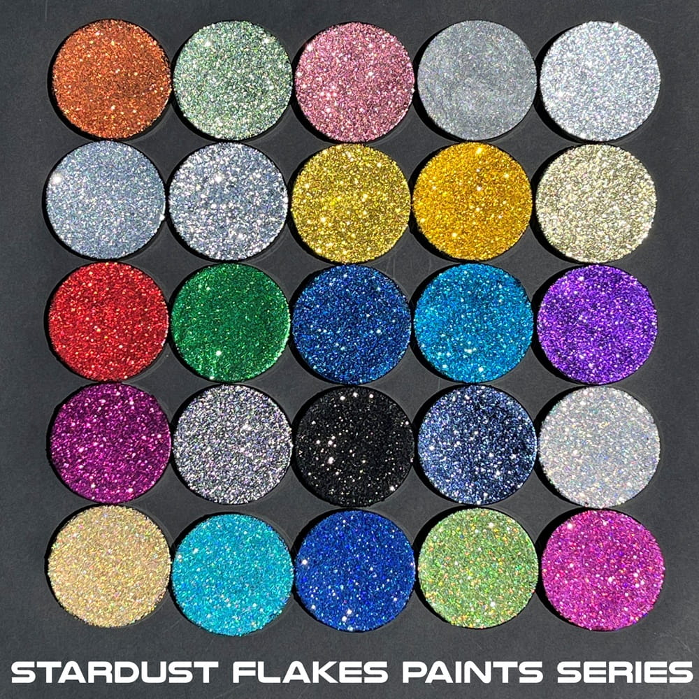 A tinta com Flakes é composta de micro lantejoulas poliéster metalizadas de qualidade premium (grande precisão no corte).