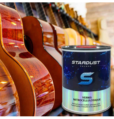 ♫ Nosso verniz celulósico é um verniz com solventes, brilhante e monocomponente que seca por evaporação. Nós o oferecemos naturalmente, pois é apreciado por muitos audiófilos que se acostumaram com ele. Utilizado por algumas grandes marcas de guitarras durante boa parte do século XX, este verniz possui certas qualidades: secagem rápida, finura e a particularidade de se fundir com a camada anterior de verniz celulósico. Esta qualidade, no entanto, é também sua fraqueza, pois é um verniz que nunca endurece totalmente, podendo se dissolver com um limpador ou alguns produtos. Além disso, sua falta de resistência não lhe garante uma longa durabilidade.