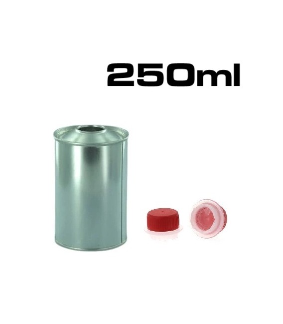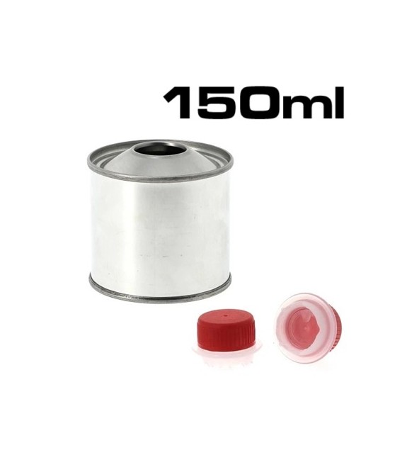 Latas metálicas de 150 ml e 250 ml com tampas de rosca.