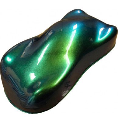 APLICAÇÃO: Num fundo preto obrigatoriamente, lixado com P400/P500 SEC ou P800 com água. (Qualquer tipo de tinta ou primer automotivo com solvente ou hidro). (A base está disponível na categoria "Tinta de base"). Depois, aplicar a tinta camaleão em 4 a 5 camadas finas, aguardando um tempo mínimo de 30 segundos entre cada camada.