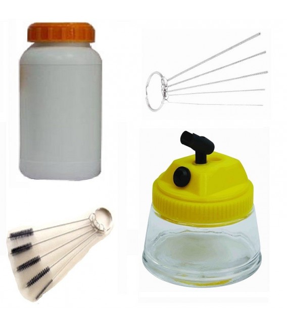 Stardustcolors oferece 3 kits contendo tudo que você precisa para limpar o aerógrafo, pincéis de pote, pás ea Hydro diluente ou solvente, dependendo do tipo de tintas utilizadas para aerógrafo.